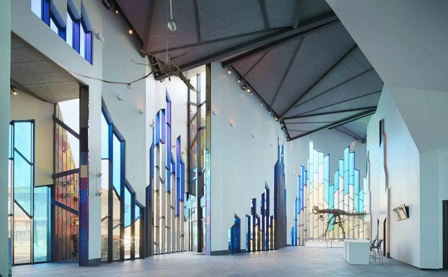 The playful, sculptural, and colorful design of the museum captivates and draws visitors in, creating an atmosphere of excitement and exploration. Upon entering the Great Hall, guests are greeted by an inviting expanse that seamlessly transitions from street to wetlands. Within this space, the fire-inspired shapes form unique volumetric spaces, constantly shifting in scale and offering countless opportunities for discovery.